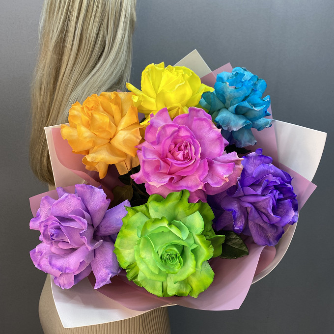 7 белых роз Кения, 40 см в зелёной матовой плёнке