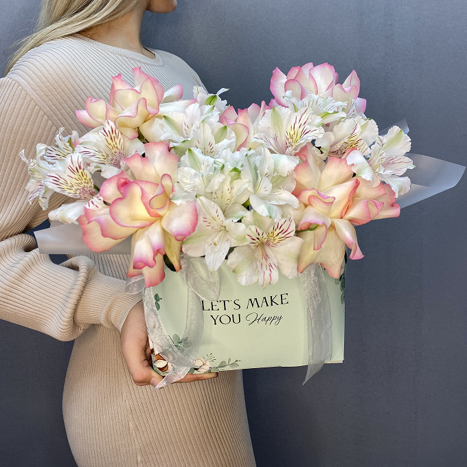 101 белая роза Кения, 40 см в розовой матовой плёнке