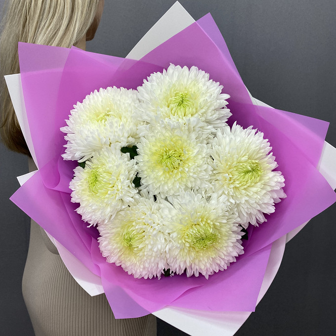 Букет Нежный аккорд из 7 одноголовых белых хризантем