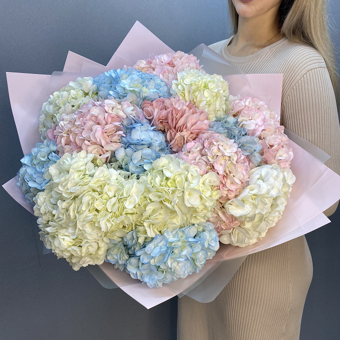 Букет Сладкая вата из 15 гортензий